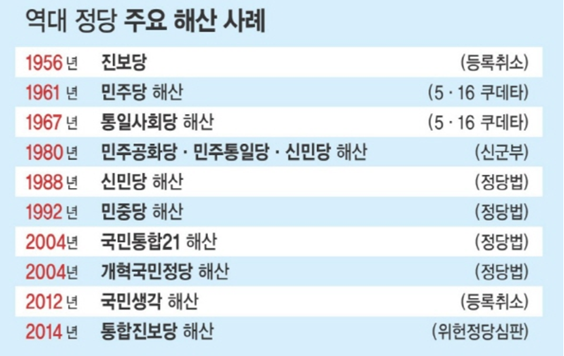 정당의 소멸에는 성립요건 흠결로 인한 등록취소, 자진해산, 헌법재판소의 해산결정에 의한 소멸 등