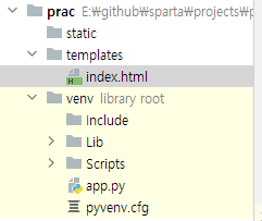static 폴더는 css나 image를 넣어두는 폴더이고, templates는 html 파일을 담는 곳이다.