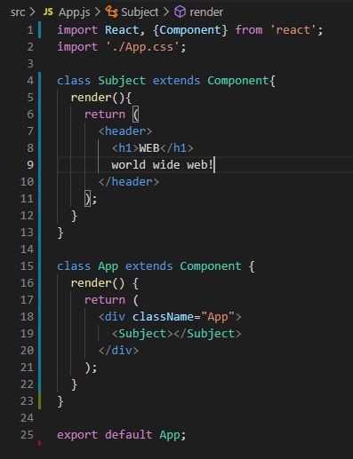 컴포넌트를 만들기 위해 App.js의 class를 다루면 될 것이다.