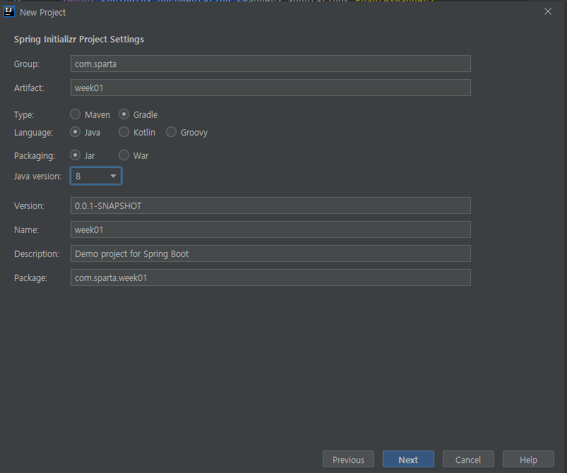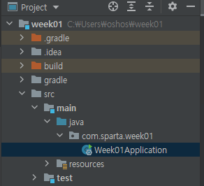 - main > java > com.sparta.week01 > Week01Application.java 파일을 더블 클릭