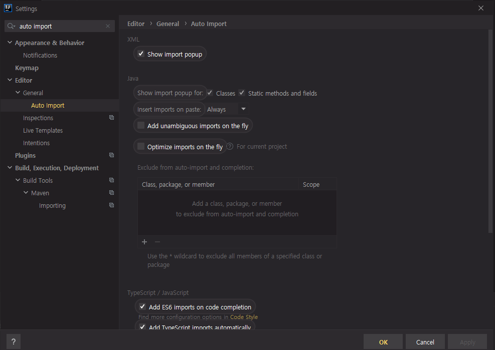 Auto import 설정