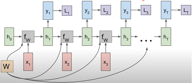 - x가 RNN에 들어오면, x*W값에 의해 유닛값이 결정되고, 그 유닛값이 다시 RNN에 들어온다.