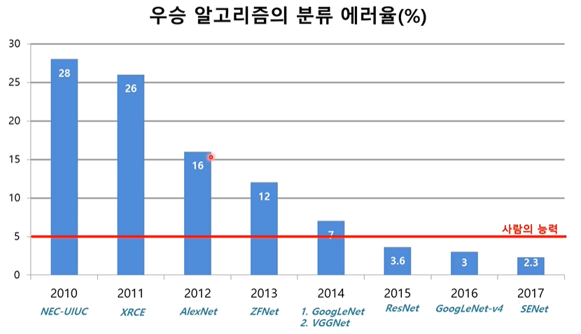 - ILSVRC : 이미지 140만개를 가지고 1000개 클래스를 맞추는 대회