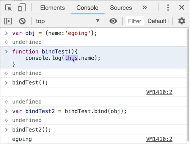 - 따라서 위와같이 bindTest2는 egoing이 출력되는것을 볼 수 있다.