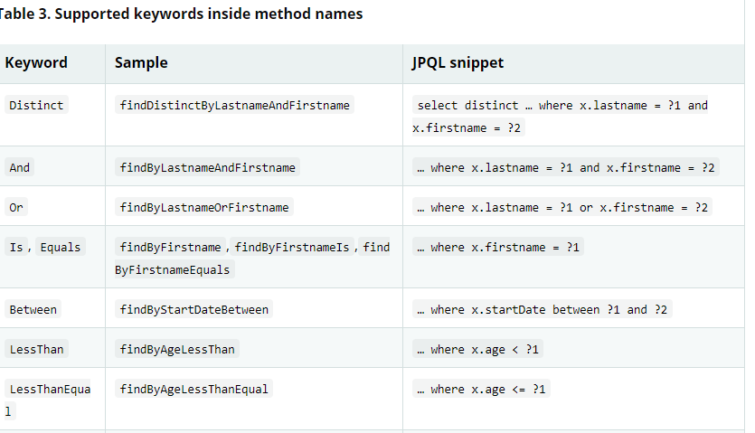 - 예를들어 findAll을 생성시간순으로 정렬하여 찾고 싶을때 등 방법을 찾을수 있다.