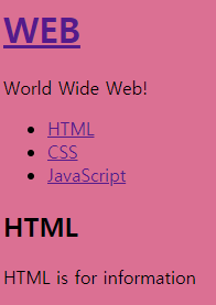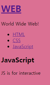 위와 같이 바꾸었다면 Web 버튼과 TOC에 존재하는 버튼은 존재하지만, HTML - CSS - JavaScript 버튼을 눌러도 똑같은 내용밖에 출력하지 않는다.