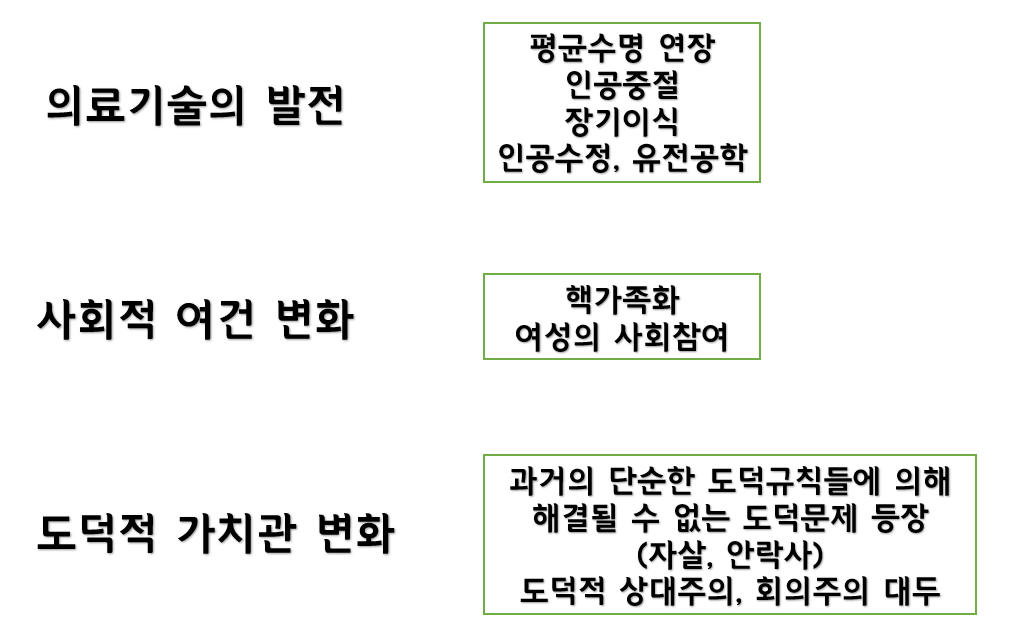 - 생명윤리학 + 의료윤리학 = 생명의료윤리학