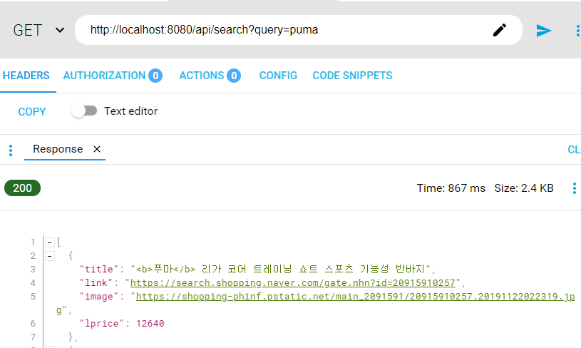 - 전달받은 검색어로 네이버 API에 요청하고, 그 결과를 사용자에게 응답합니다.