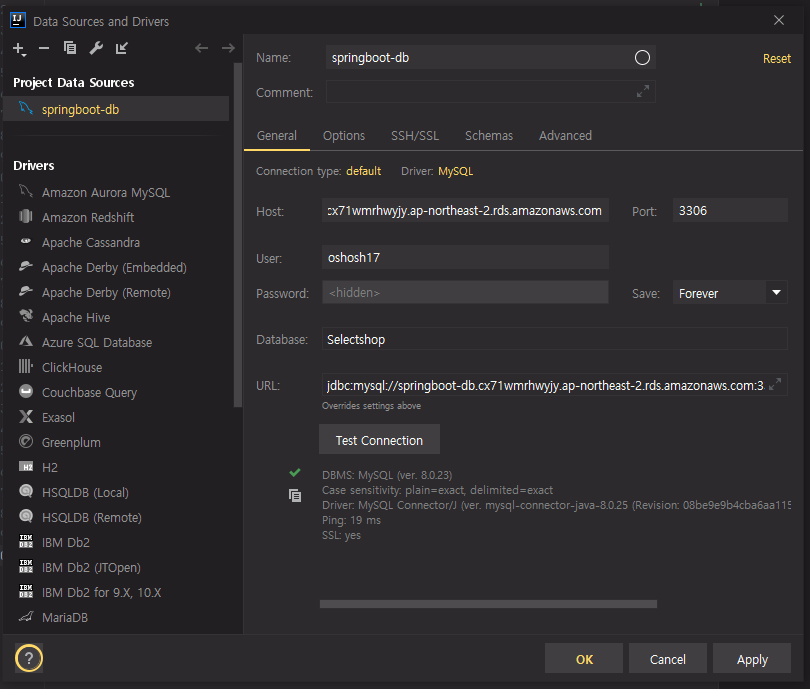 spring.datasource.url=jdbc:mysql: //나의엔드포인트:3306/Selectshop