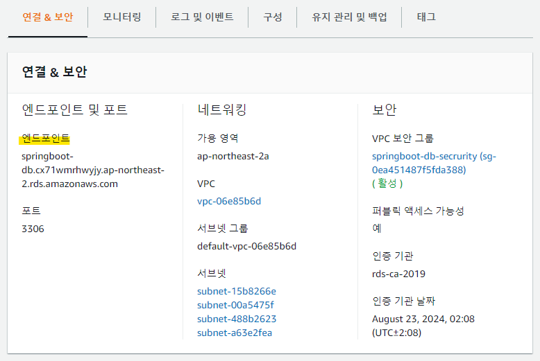1. DB의 엔드포인트 복사