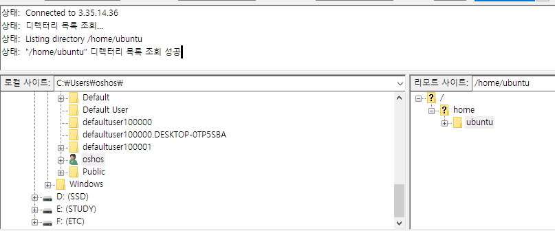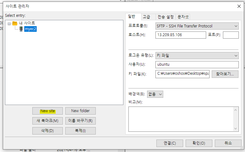 3-2. Filezilla를 이용하여 EC2에 JAR 파일 전송