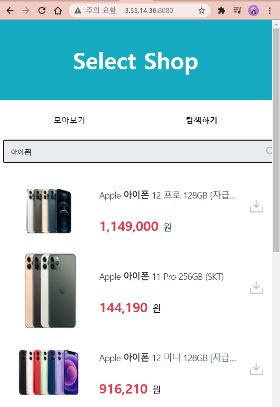 - 퍼블릭 IPv4 : 8080 을 통하여 접속해보자.