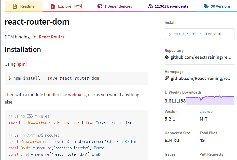 - 구글검색 / npm 홈페이지 등 공식문서와 연결해준다.