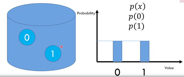 가방이 있고, 공이 두개(0, 1)가 있다.