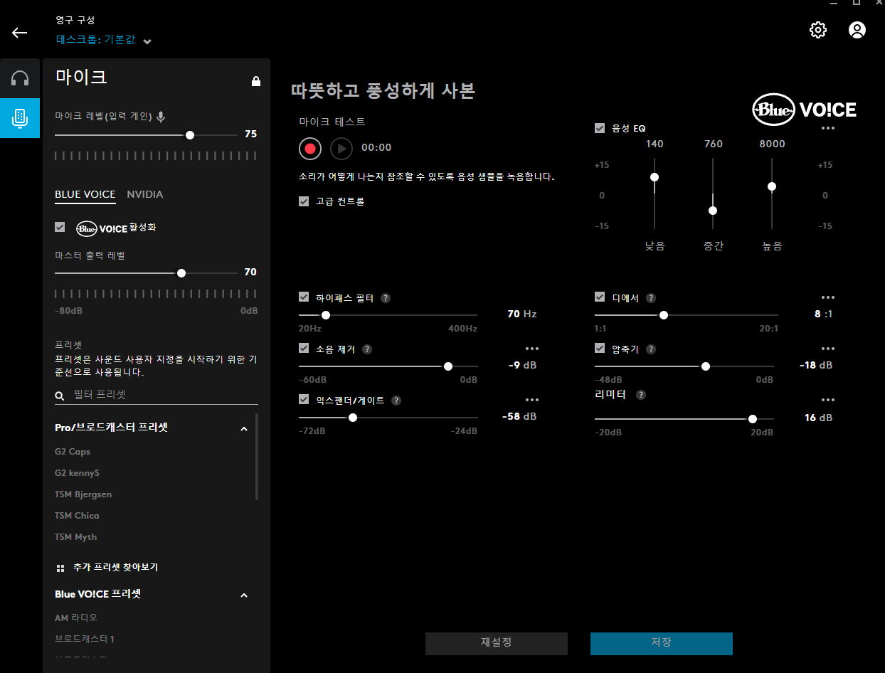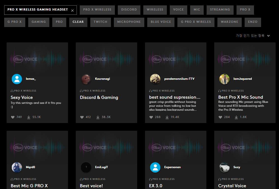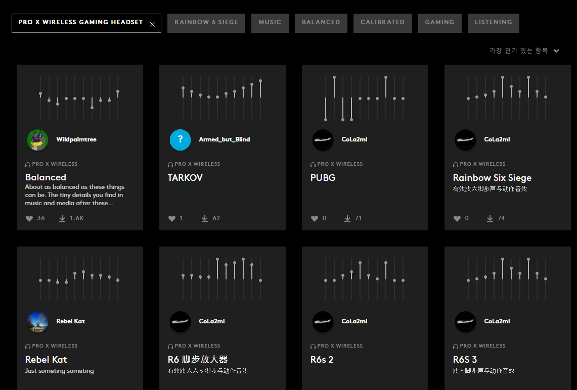 - 이렇게 EQ에 대한 프리셋을 로지텍 G HUB 에서 받을 수 있어요.