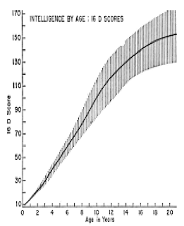 - 연령이 증가함에 따라 지능의 변산도가 증대한다.