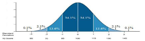 + 전체 평균으로부터 개인이 떨어져 있는 정도(편차)를 계산하여 지능지수를 산출한다.