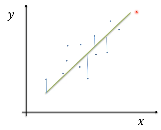 아래 그림의 Line의 좌표값들의 제곱의 값 합이 가장 적게 되는것을 찾는것이 MLE가 됨.