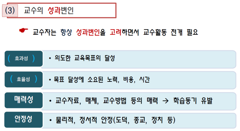 교수는 학습자가 처한 외적 조건과 상황을 설계, 개발, 관리하는 적극적인 과정이다.