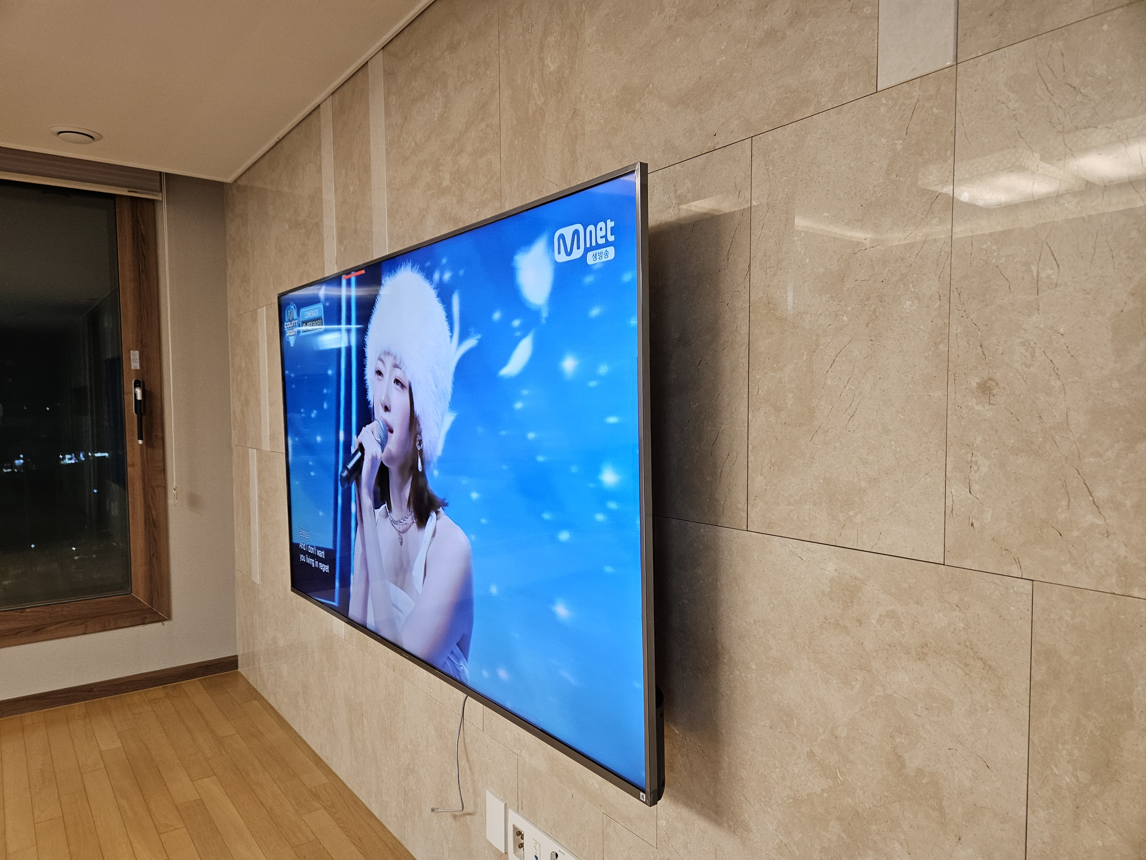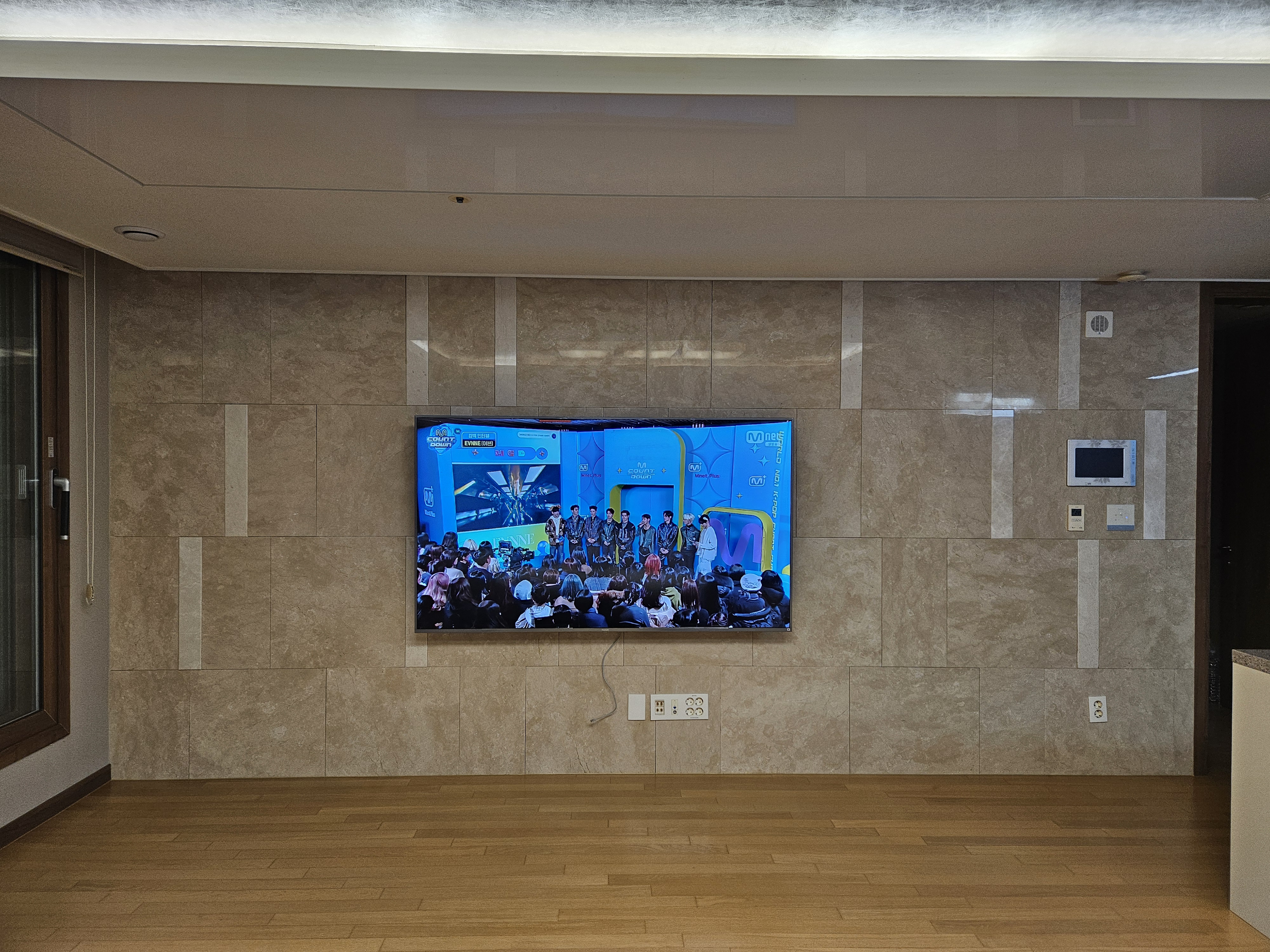 본가가 거실이 넓어 75인치가 엄청 커보이진 않아요