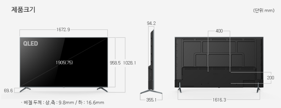 OLED TV가 아니니 당연히 두께는 있는편이에요.