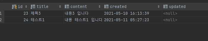 | Board 목록 보기, 상세보기 API (0) | 2021.05.13 |