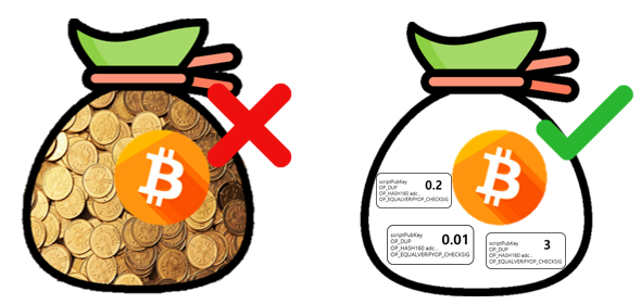 - 지갑의 상태가 3.21BTC 일때 3.1을 보낸다면, TX가 두가지로 보내지게 된다.