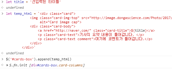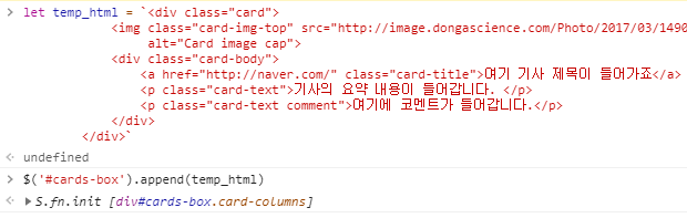 - 위처럼 ` (back tip) 을 활용하여 선언하여 append를 활용해준다면 동적으로 내용을 추가할 수있다.