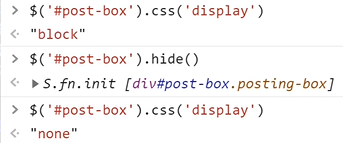 - 클릭했을때 display 값이 none 이면 show / block 이면 hide 로 응용 할 수 있다.