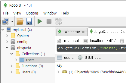 db.users.insert_one(doc) # collection 기능. db안의 Users 라는 Collection에 생성