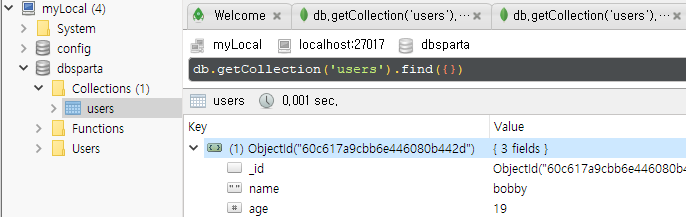 | Robo 3T & Mongo DB - Insert, Find (0) | 2021.06.13 |