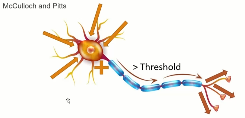 - 합쳐진 신호들이 역치를 넘지 못하면 다시 가라앉고, 역치를 넘는 순간 전체의 뉴런이 흥분을 하고, 전기적 신호로 연결된다.