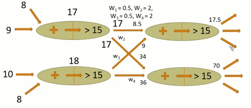 - 출력 신호에 Weight 값이 곱해져서 다음 뉴런의 입력 신호가 된다