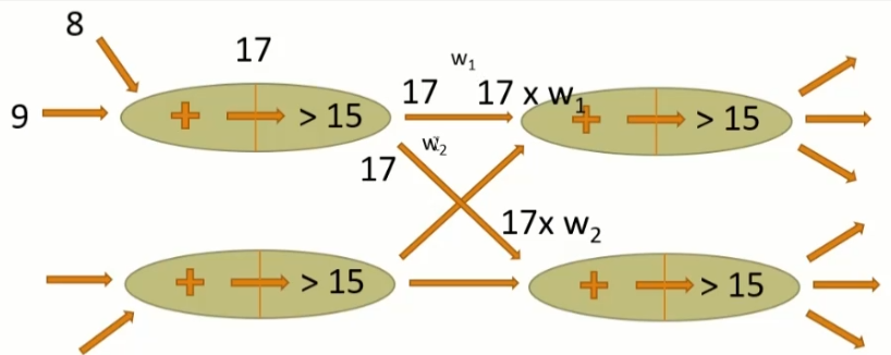 - 출력 신호에 Weight 값이 곱해져서 다음 뉴런의 입력 신호가 된다